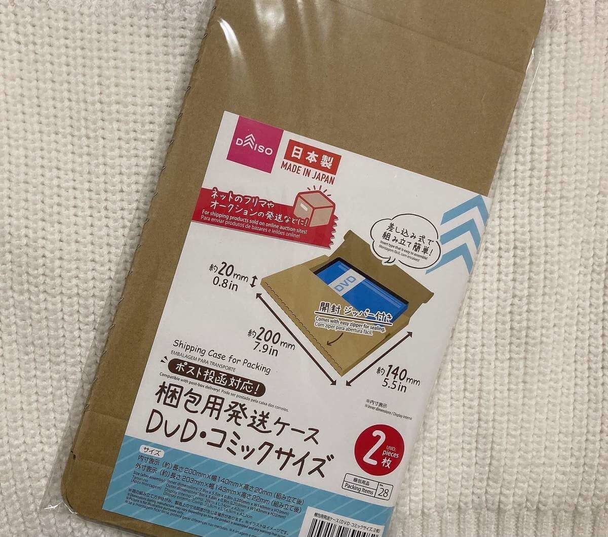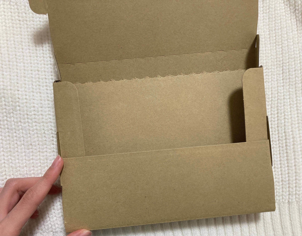 2つ目は「梱包用発送ケース」。長さ20cm×幅14cm×高さ2cm(内寸)で、DVDやコミックを送るのに適しています。