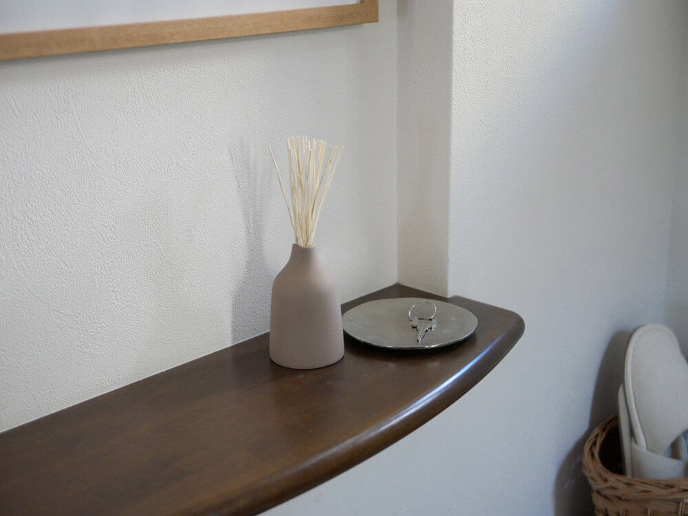 小さな一輪挿しの花器は、玄関やリビング、洗面所、トイレなど少しの空間に手軽に置くことができます。