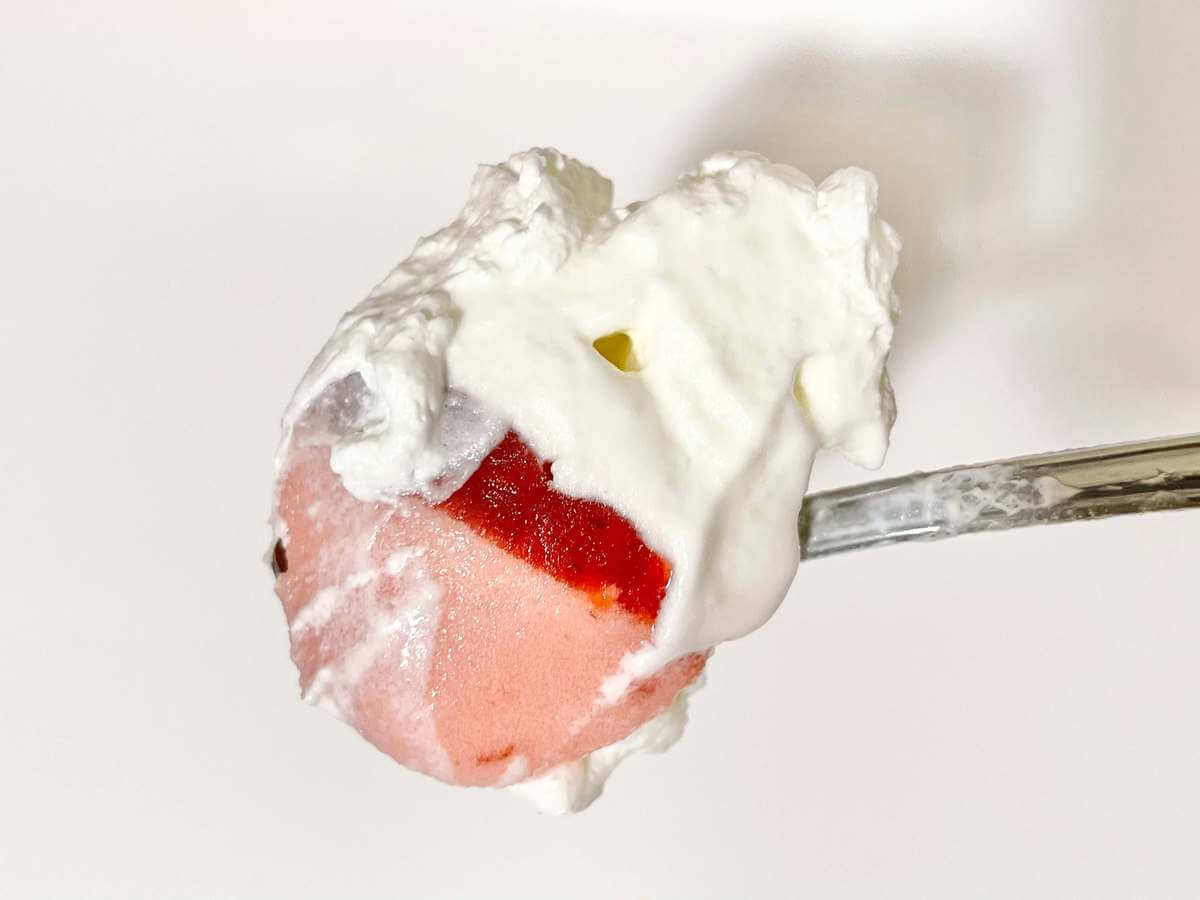 ミルクアイスと一緒に食べると、しっかりと混ざり合って酸味が爽やか。