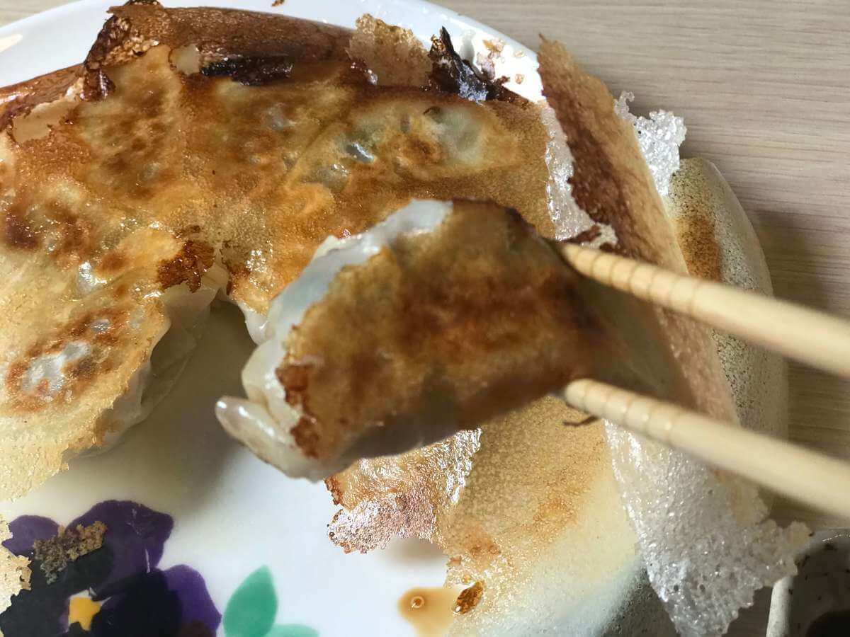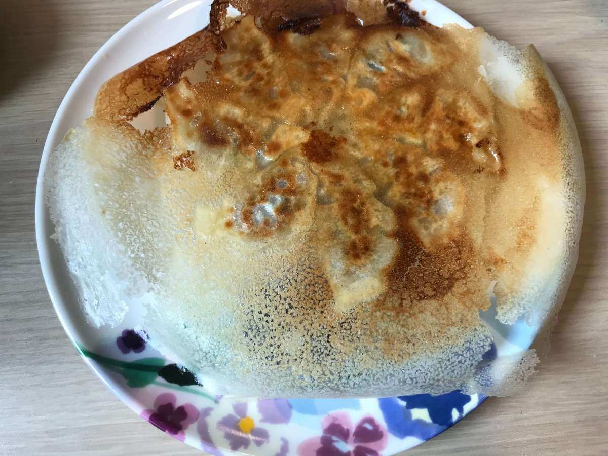 ひっくり返して、パリパリ羽根つき餃子完成!