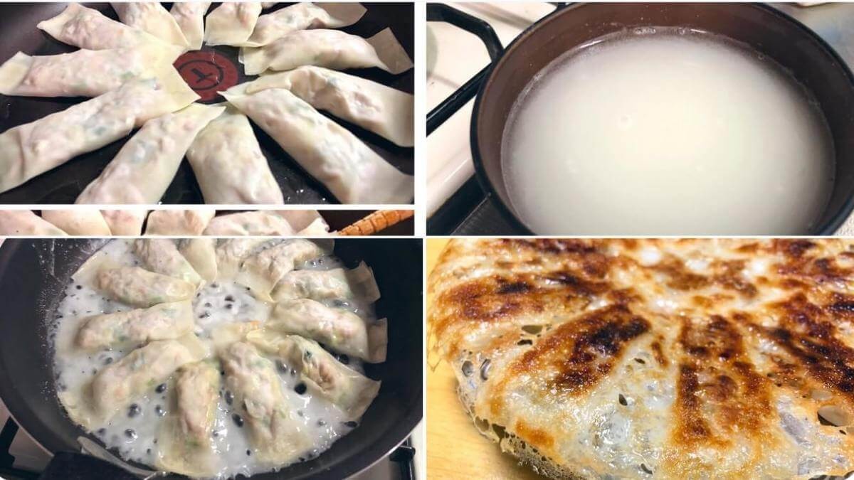 「羽根つき餃子」焼き方②小麦粉水を加える