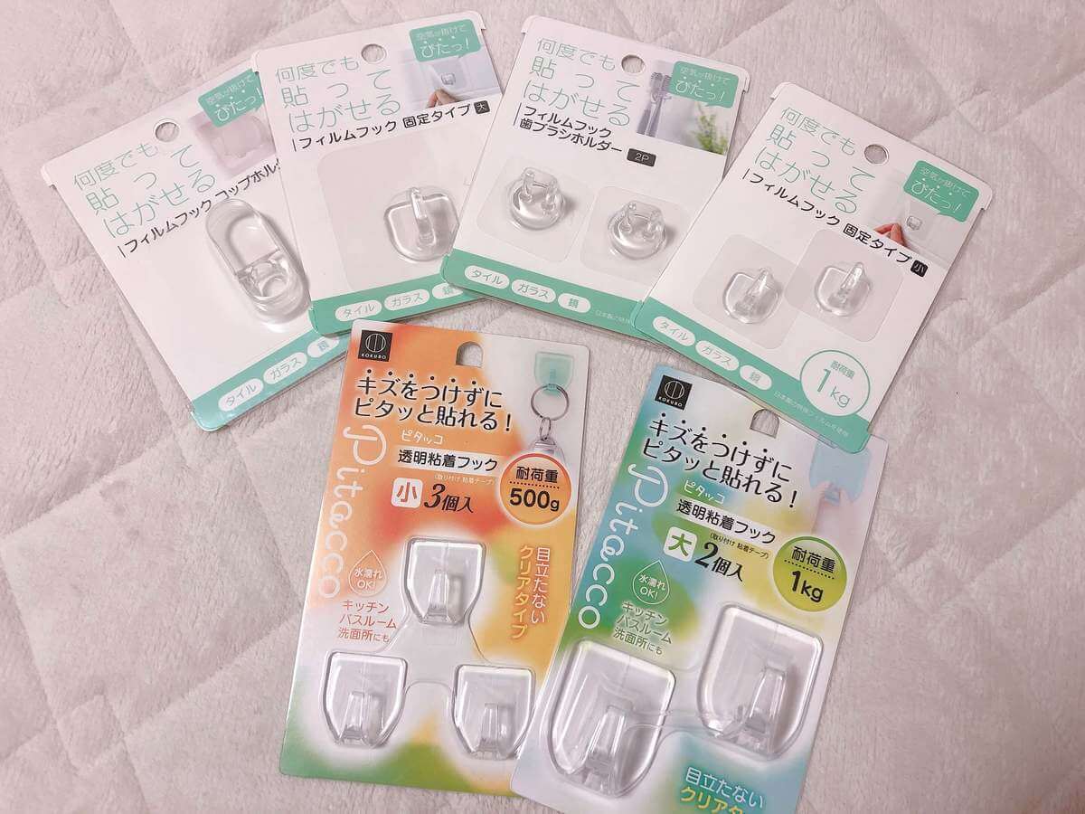 こちらは、誰もが知っているセリアで人気の透明フック。いろんな場所で使えるので、どんな物でも引っ掛け収納出来ちゃいますよ♡