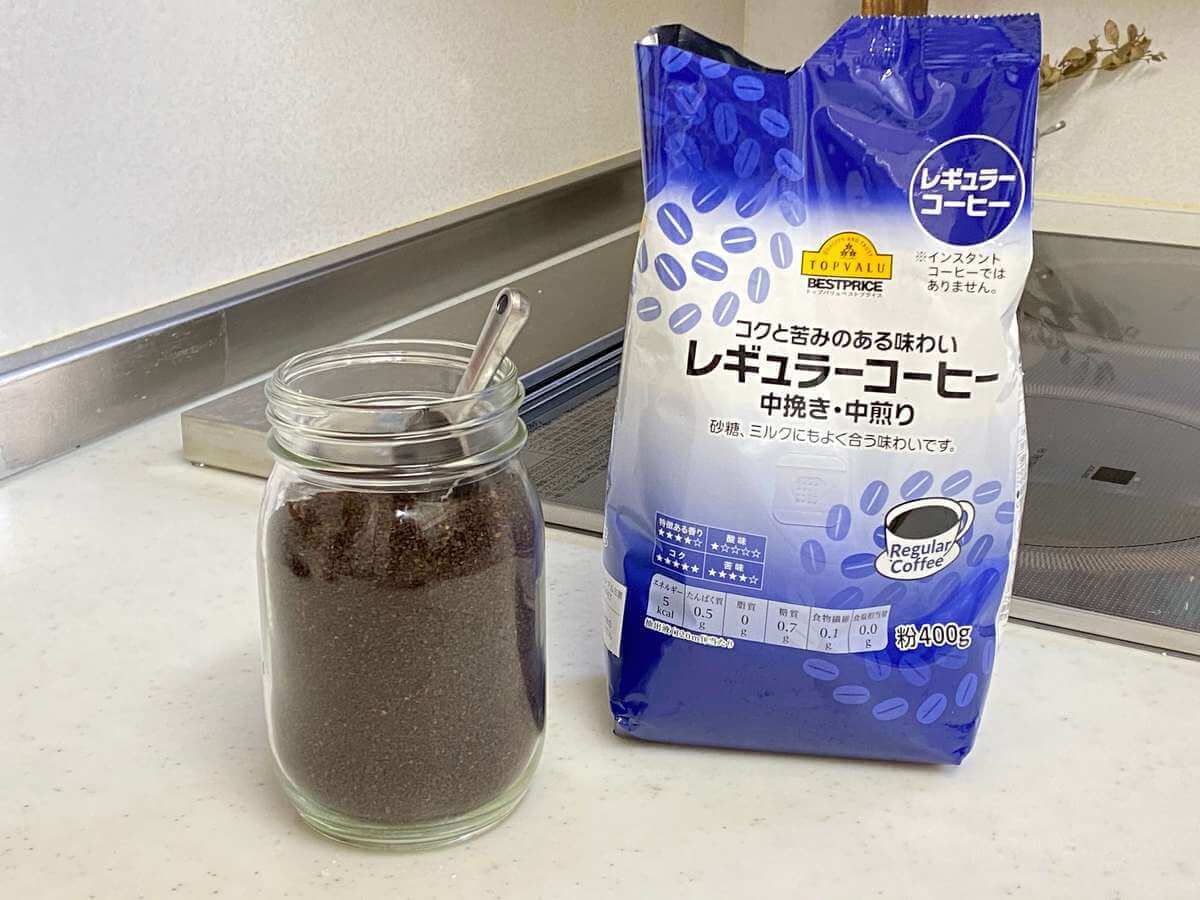 カフェメニューに欠かせないコーヒーにオススメなのが、TOPVALU BESTPRICEの「コクと苦みのある味わい レギュラーコーヒー 中挽き・中煎り 400g入り 321円(税込)」です。
