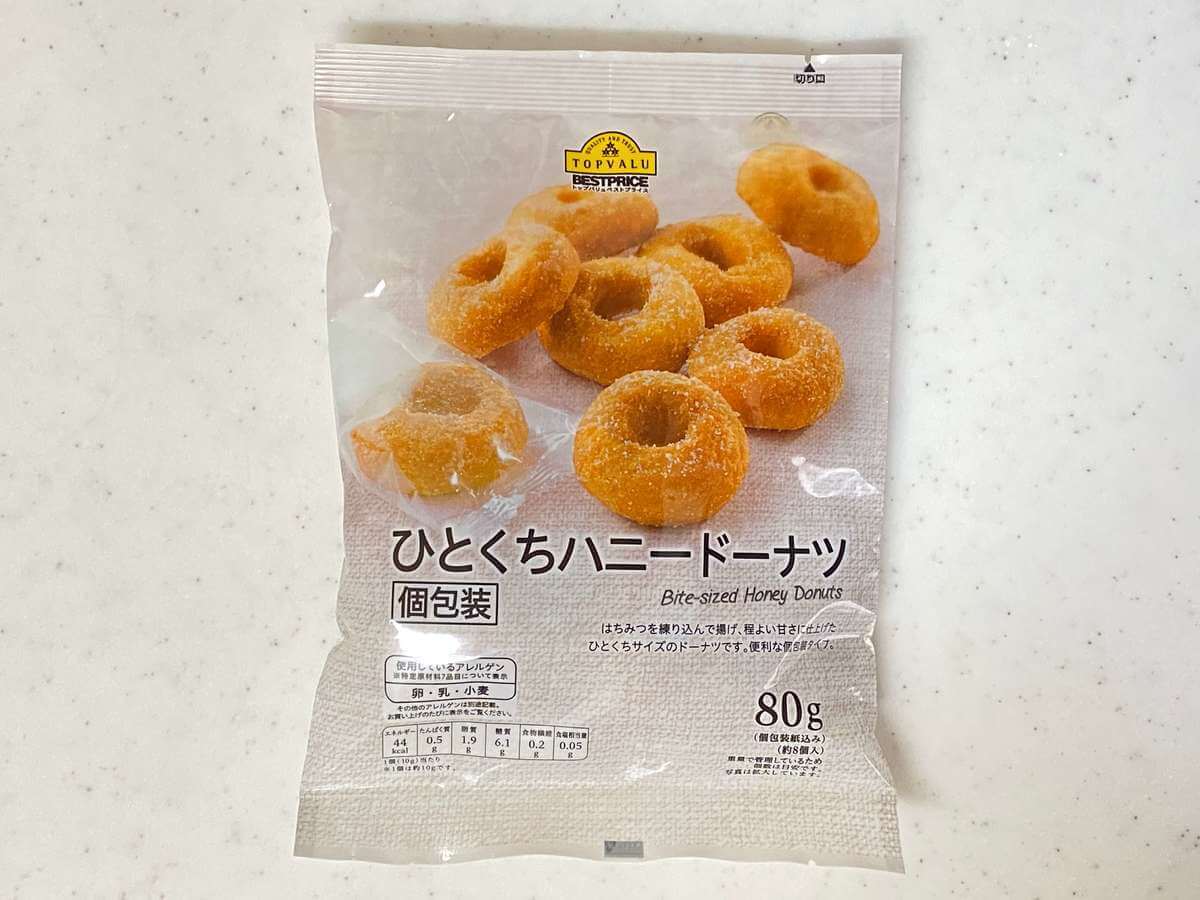 コーヒーのお供にオススメなのが、TOPVALU BESTPRICEの「ひとくちハニードーナツ 80g 97円(税込)」です。