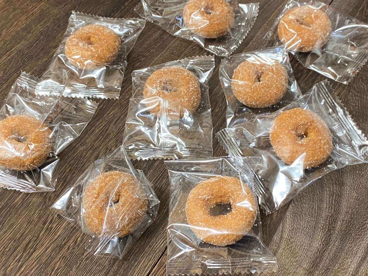 直径3cmほどのミニサイズのドーナツ。個包装になっているので、普段の子ども用のおやつにしたり、お友達のおうちに行く時のおもたせとしても使えて便利です。