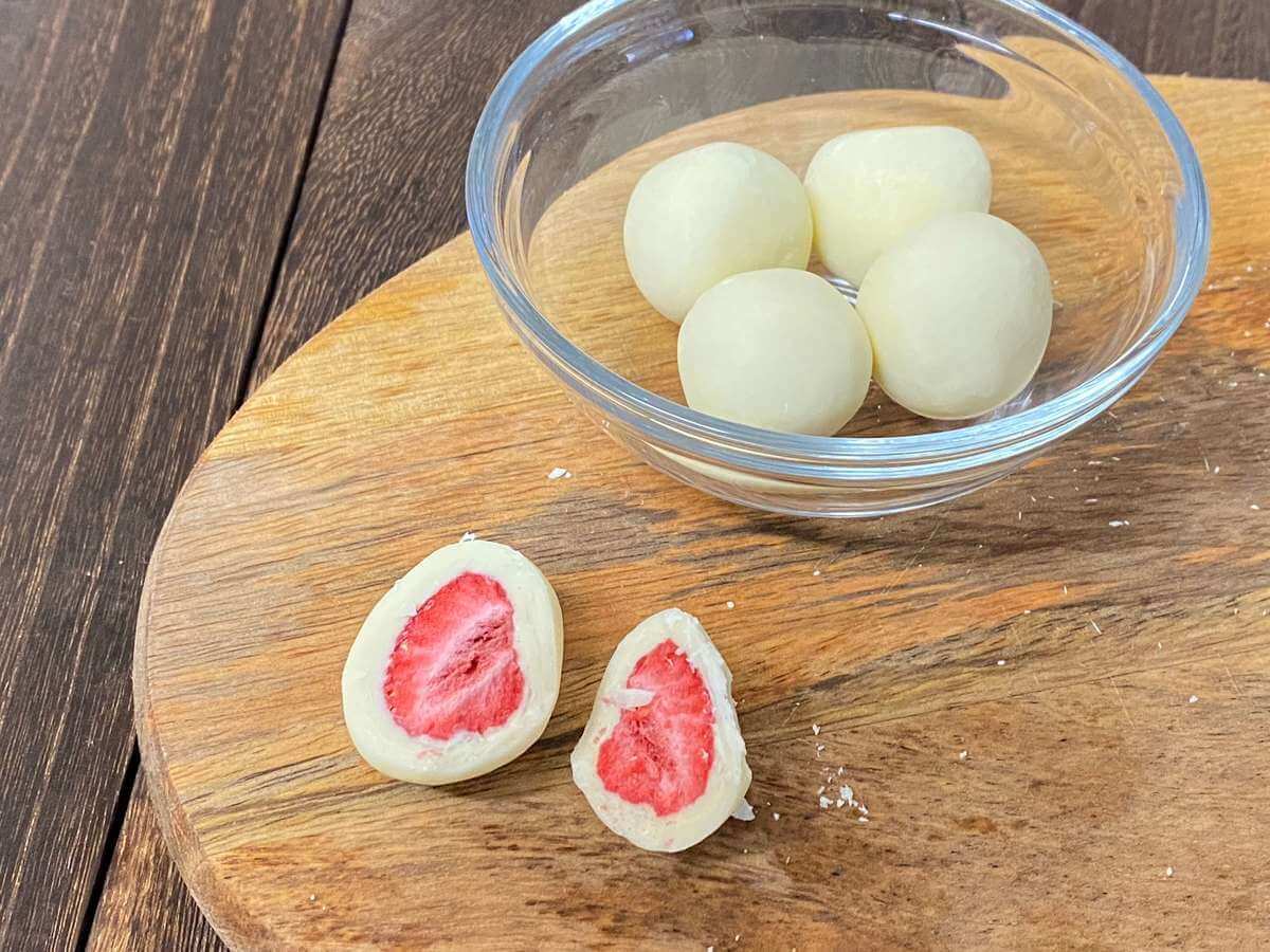 フリーズドライのいちごの酸味と、ホワイトチョコの甘さがとてもバランス良くて、あとを引くこと間違いなし!6粒入りと量は少ないですが、このおいしさとコスパなら十分です。