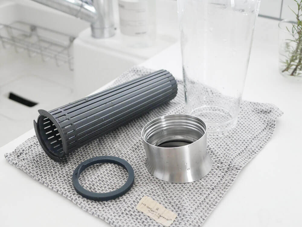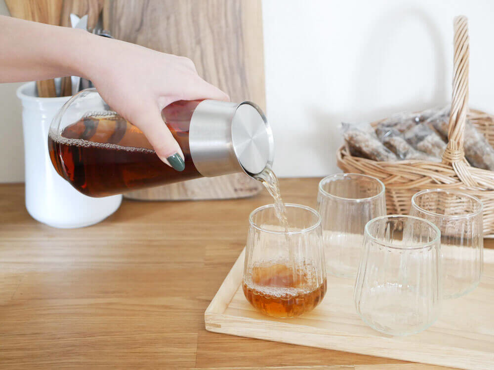 付属のフィルター付きの「コールドブリューカラフェ」は、コーヒーの粉や茶葉を入れていつでもフレッシュにゴクゴク飲めちゃえます!