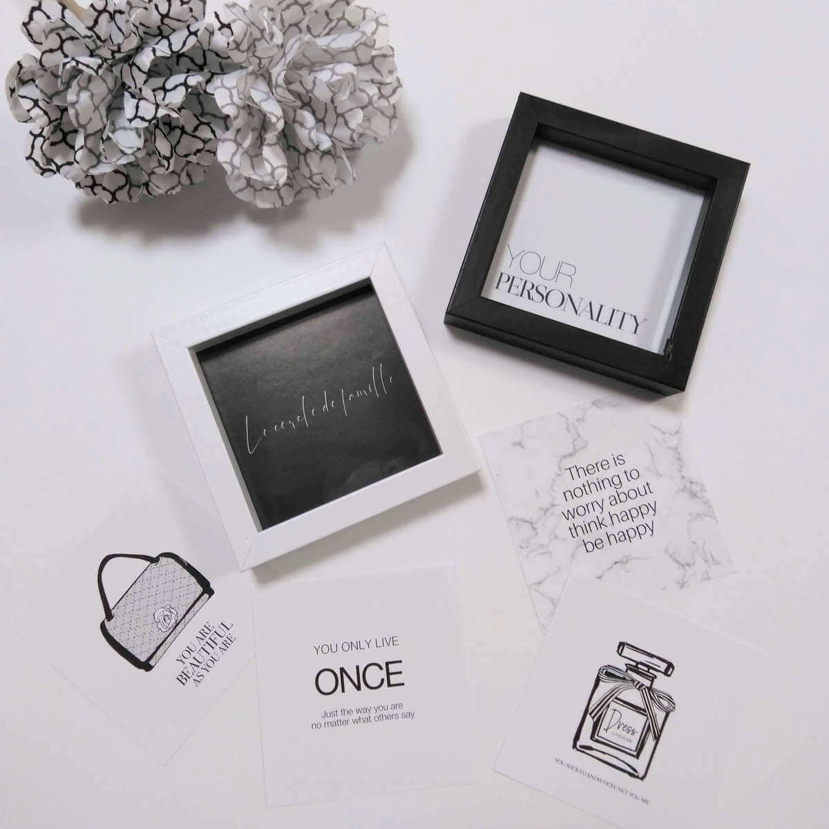- インテリアフォトフレーム ブラック、ホワイト 各110円(税込)