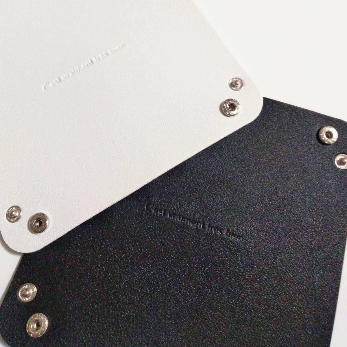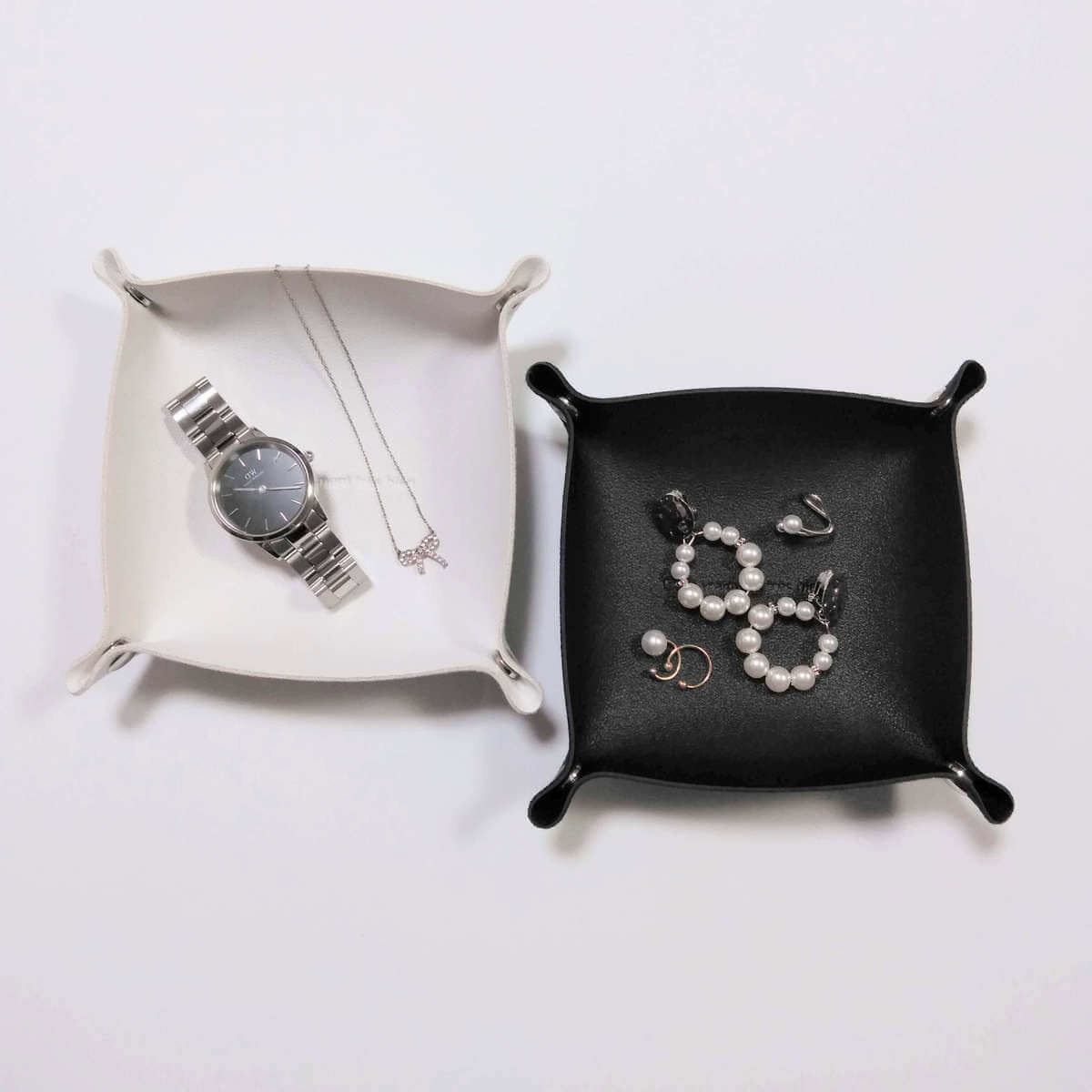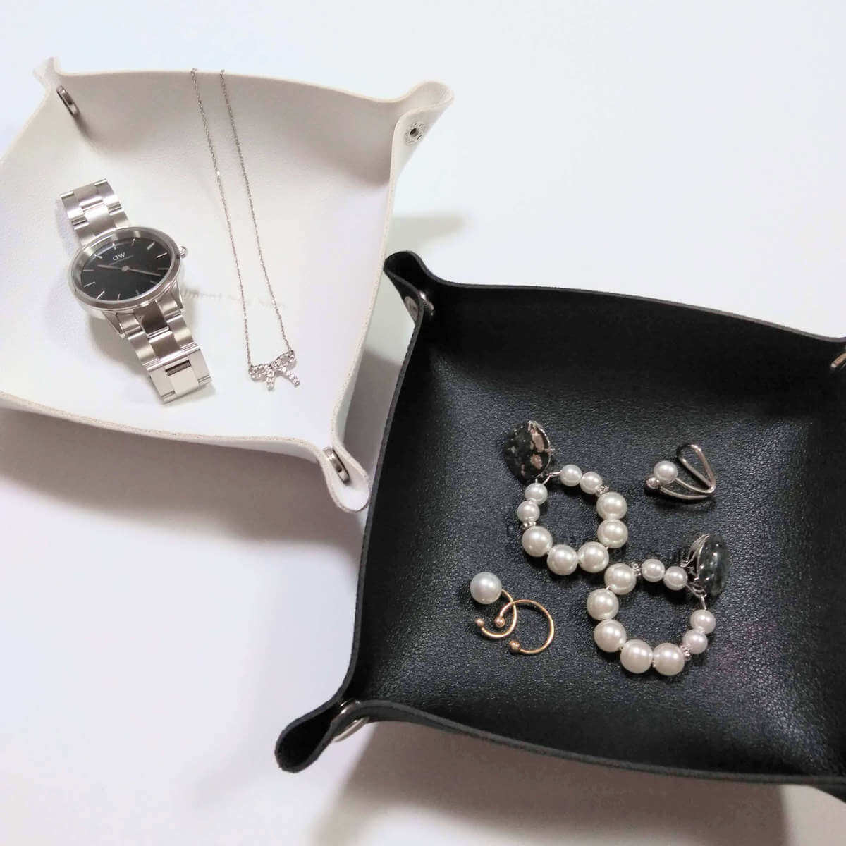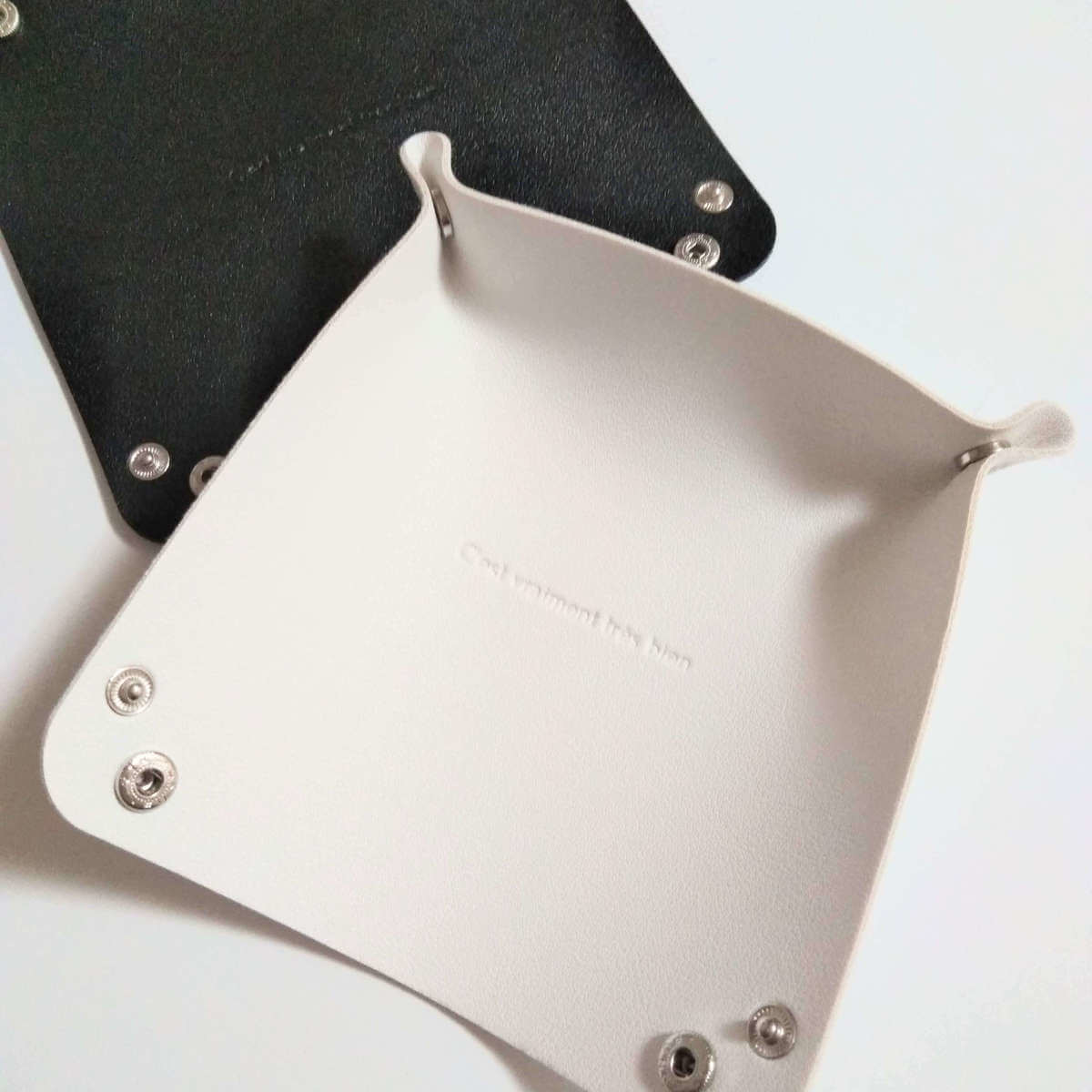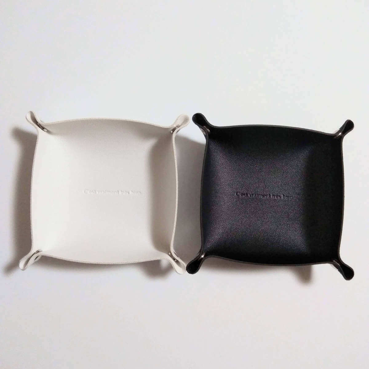 - フェイクレザートレー ホワイト、ブラック 各110円(税込)