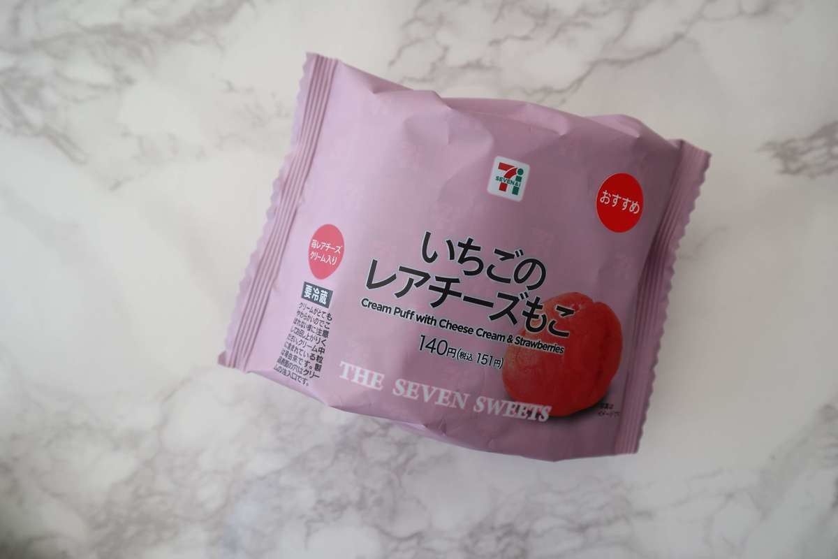 新作! セブンイレブン《いちごのレアチーズもこ》140円。