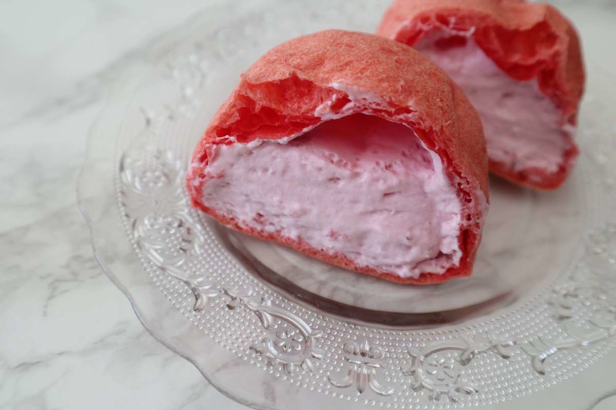 中には、いちごレアチーズクリームがたっぷり! テンションが上がります。 1口食べると溢れてきます。