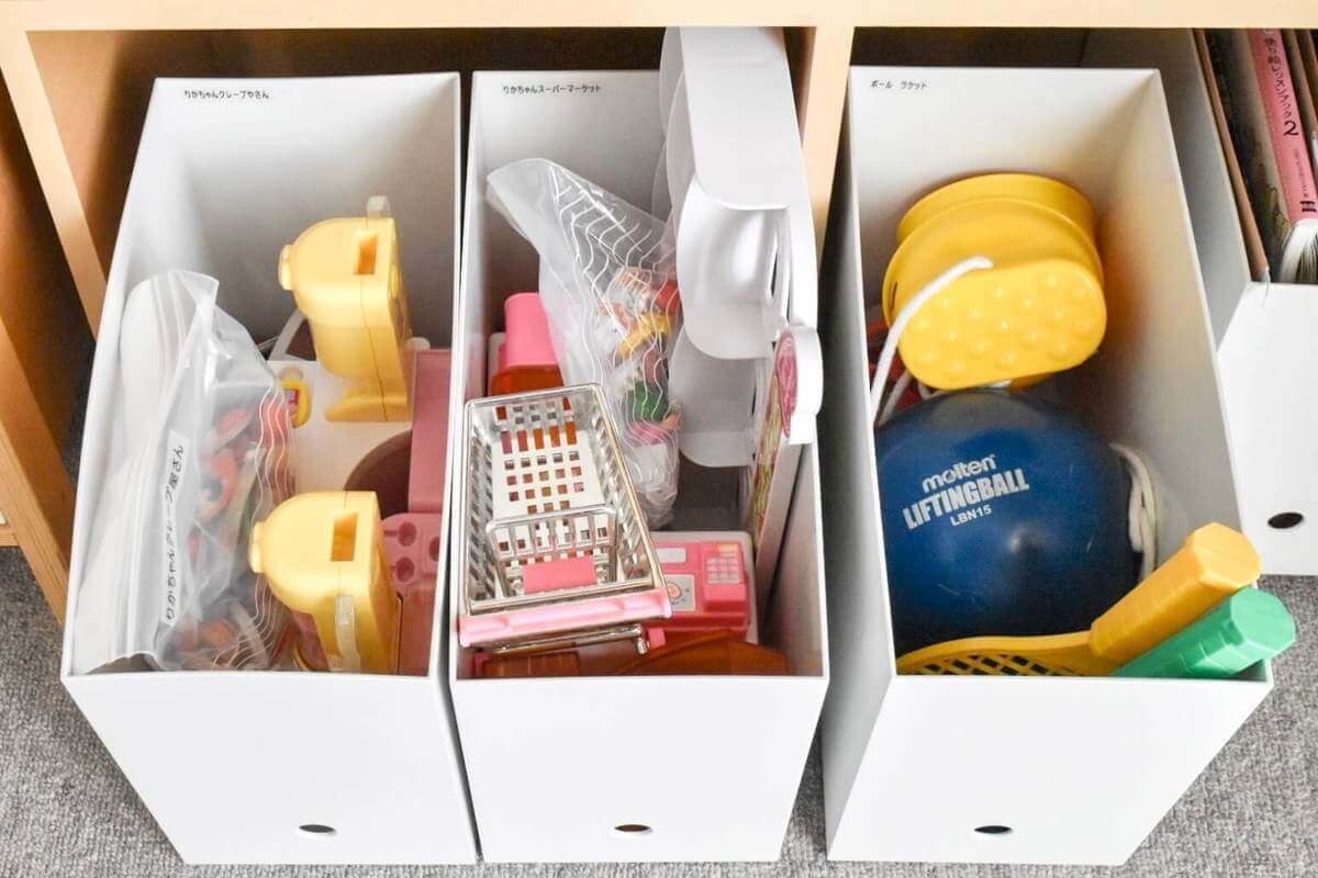 子どもたちのおもちゃ収納にも、ファイルボックスが役立ちます。