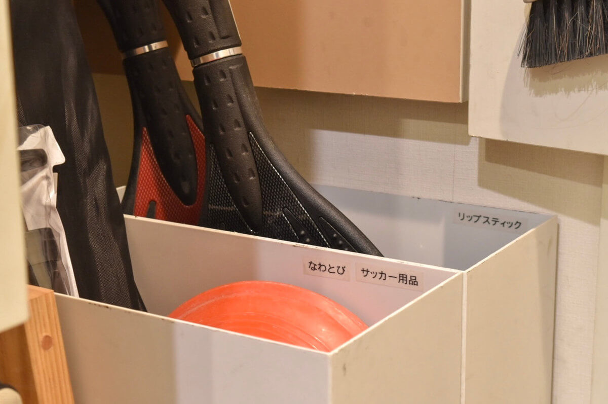 わが家はリカちゃんのお店セットやボール、子どもたちが作ったものなどをざっくり収納しています。