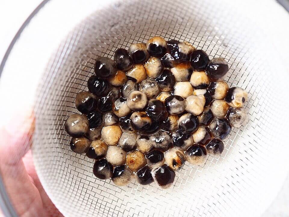 最後にお湯をきれば、ぷるぷるでもちもちのタピオカが、あっという間に完成しました♪