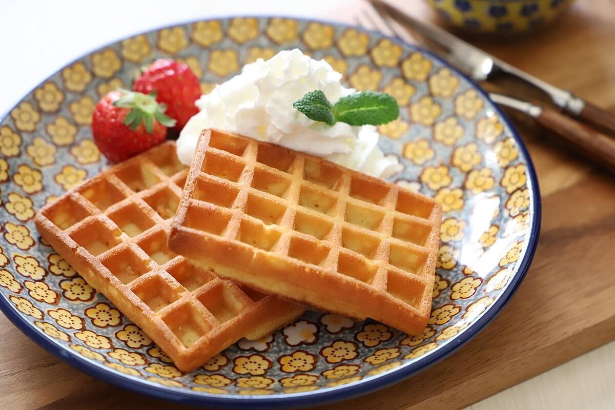 焼き終わってすぐのワッフルは柔らかくしっとりとしています。