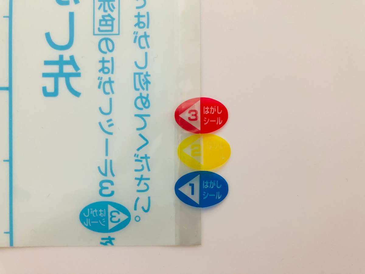 まずは「はがしシール3」を持って台紙を少し剥がしました。台紙を少しずつ剥がしながら貼り付けていきます。