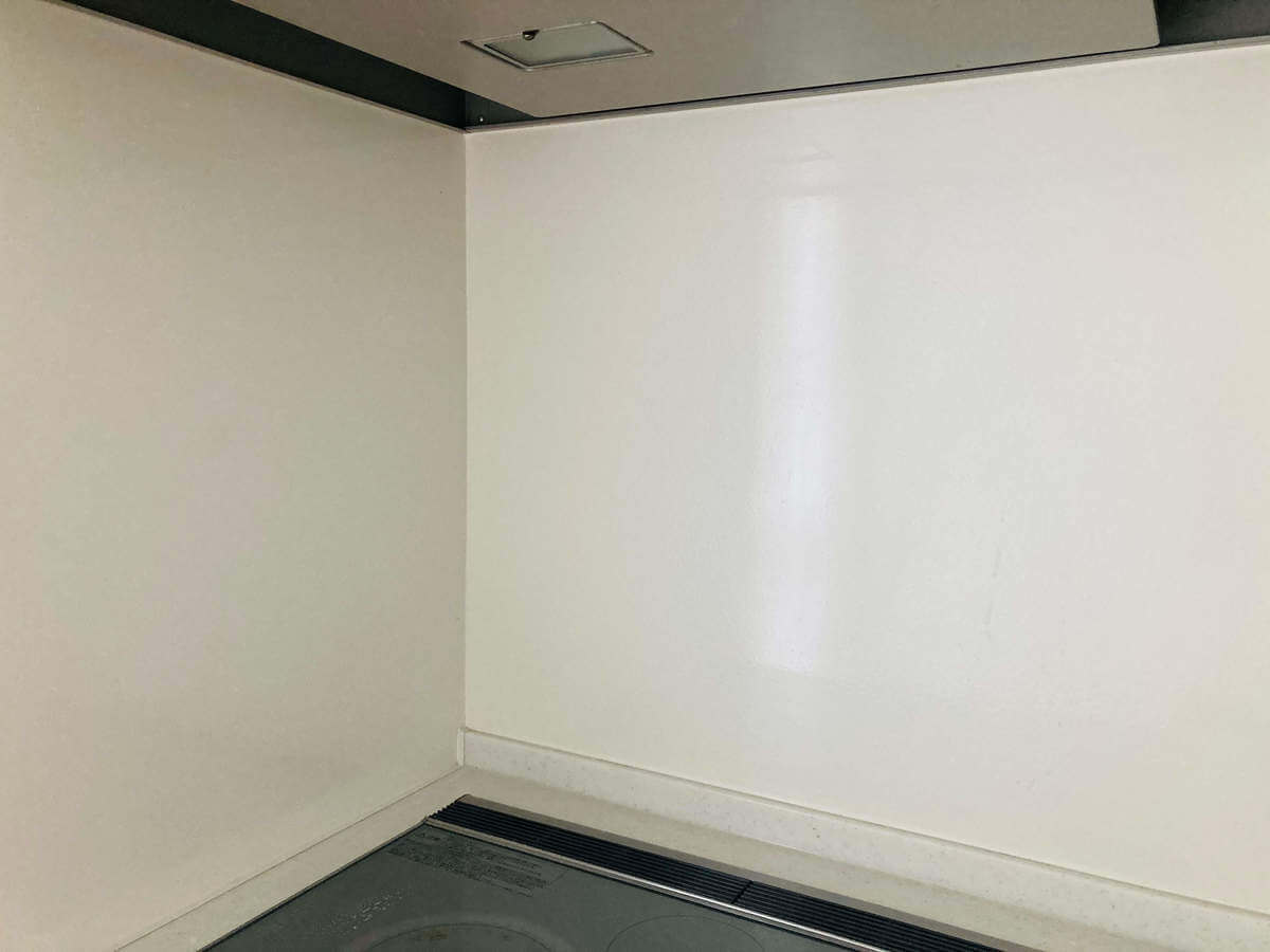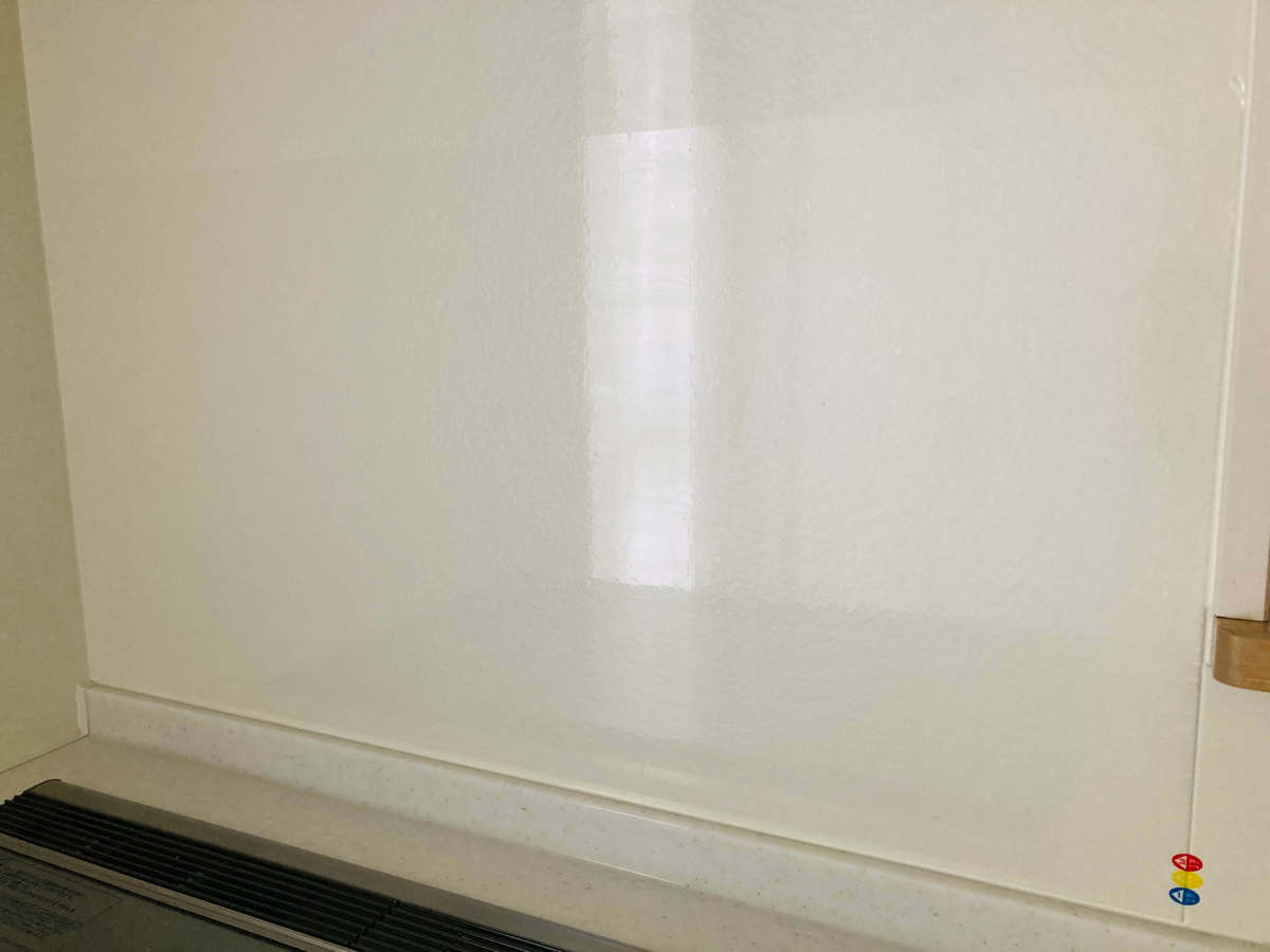 貼り付けが終了したキッチンです。シートが透明なので見た目は変わりませんね。はがしシールが少々目立ちますが、小さいのでそれほど気になりません。
