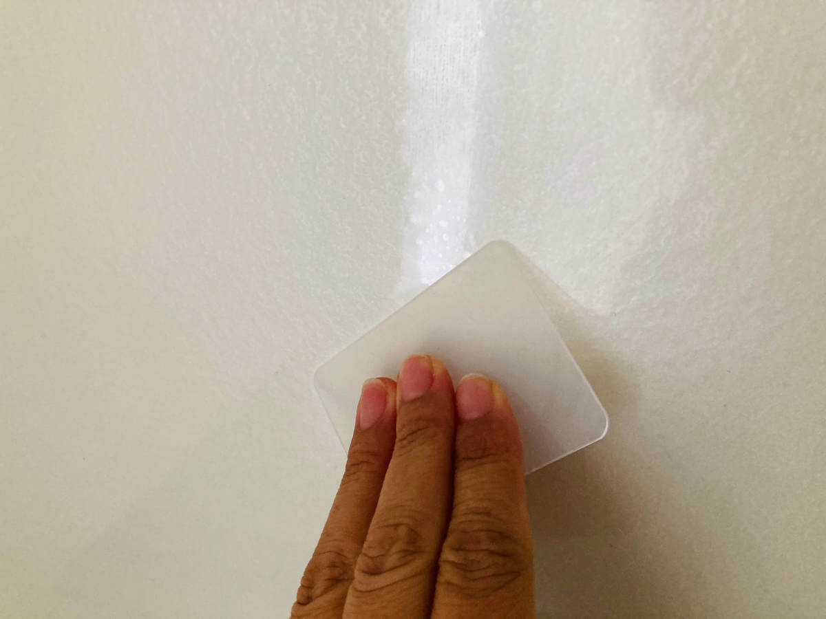 付属のヘラでより細かい気泡や水分を押し出していきます。中央から外に向かって押し出すと、小さな気泡や水分もきれいになりました!