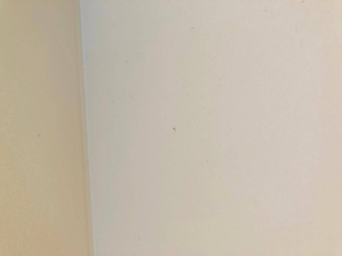 張るときに何度も張ったり剥がしたりしていたので、小さなホコリが入ってしまいました!それでもあらかじめたっぷり濡らしておいたおかげで、細かいシワや気泡はありません。