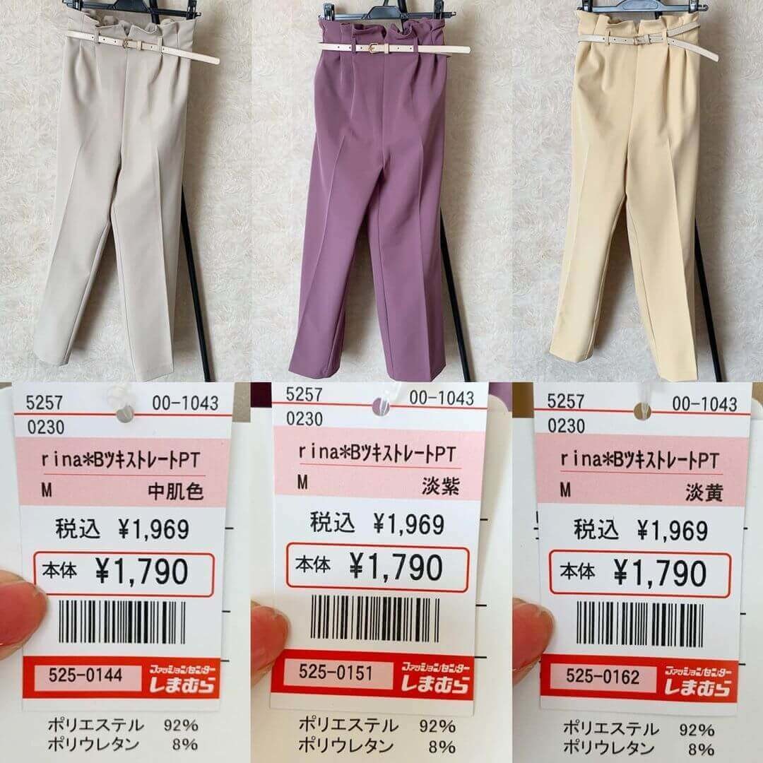 しまむら×rinaさんコラボシリーズから、ベルト付きパンツをピックアップしてご紹介しました。
