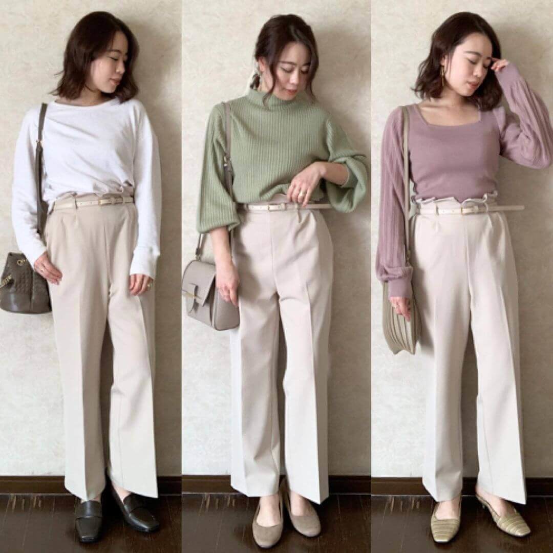 肌馴染みの良いナチュラルな色味のパンツは、春コーデに清潔さをもたらしてくれそうですね。