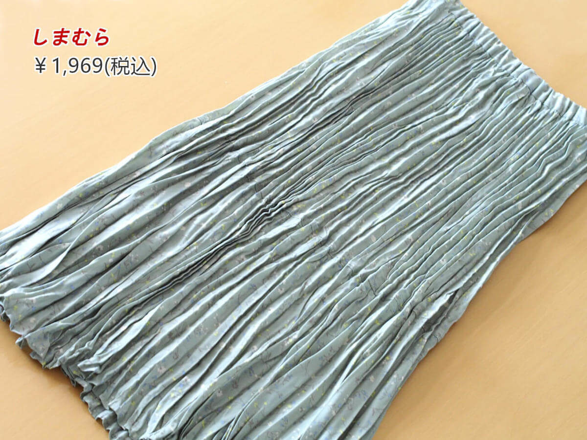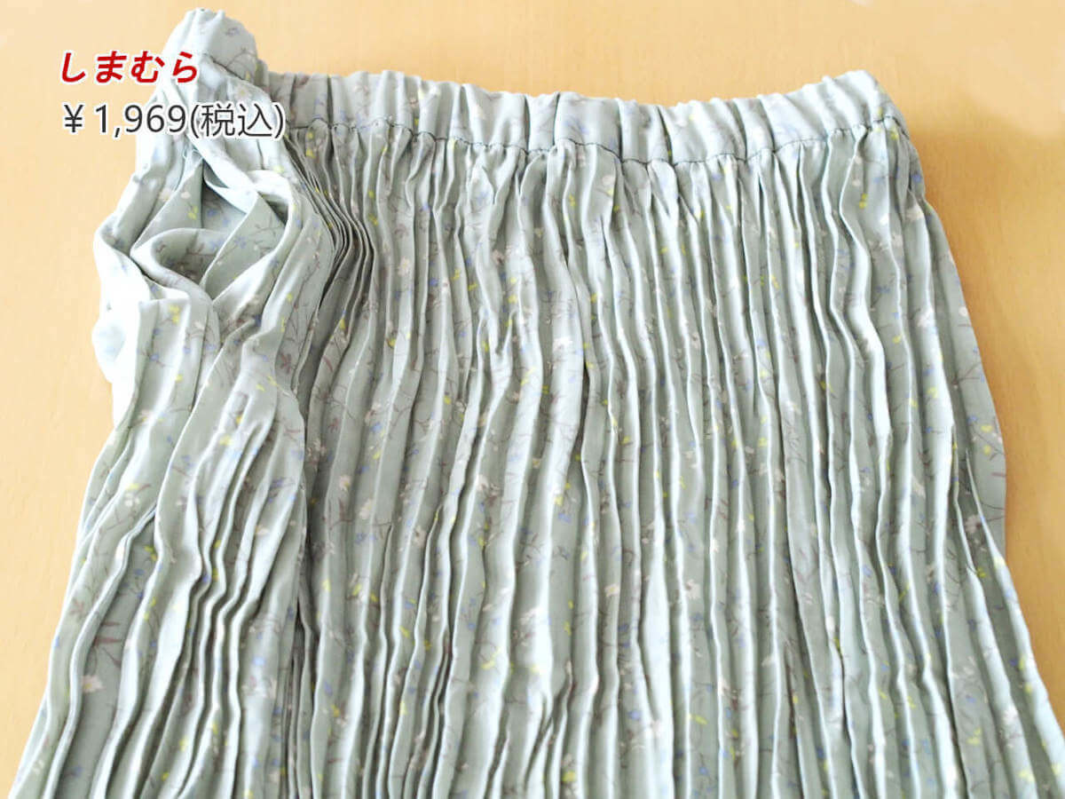 淡いグリーンと小花柄が春らしいプリーツスカート。