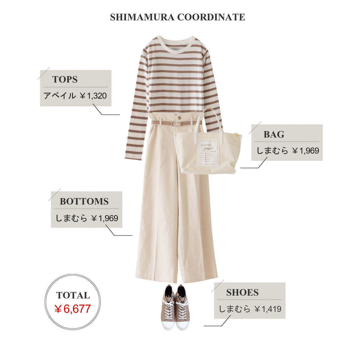 いかがでしたか? コーデに使用したアイテムは、すべて「しまむら」と系列店「アベイル」のものです。