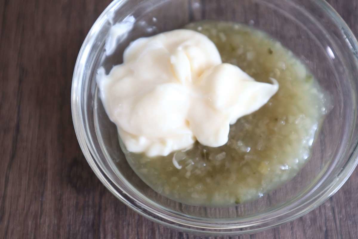 4.タルタルソースの素1袋につきマヨネーズ大さじ1を混ぜる。3にタルタルソースをかける。