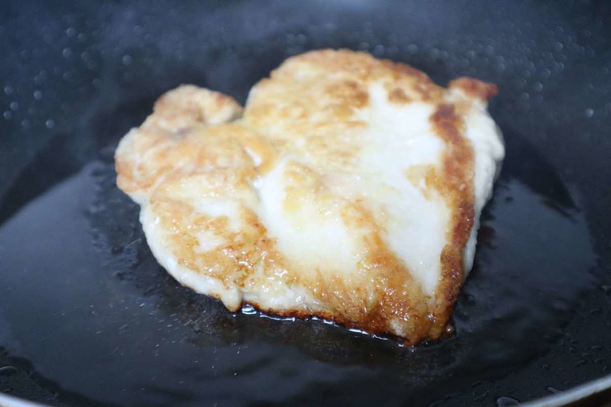 2.フライパンを中火にかけて、オリーブオイルを加えて1を両面4分ずつ焼く。