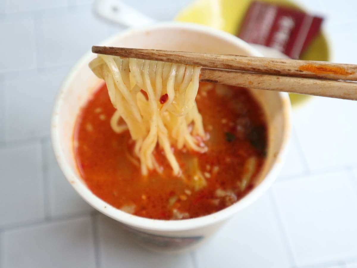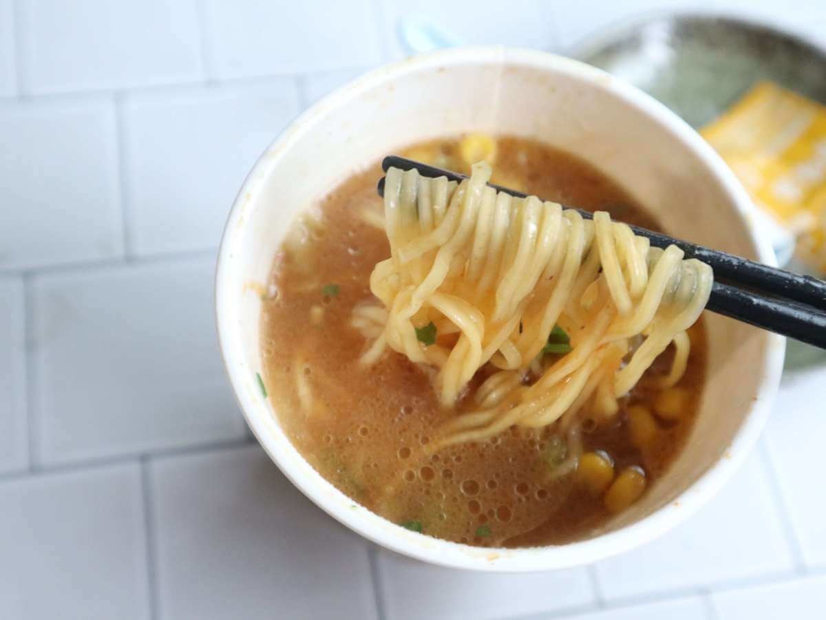 麺は、他のカップラーメン同様、ノンフライ麺で全粒粉入りでコシがあり美味しいです。