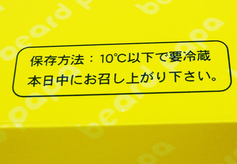 箱には「10℃以下で冷蔵し、本日中にお召し上がりください」との記載が。家族の都合がよい時に購入するようにしましょう。