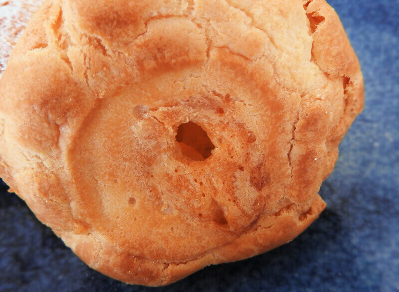 シュー生地の表面をみると、生地のすきまからカスタードクリームが漏れてます……。シュークリーム作りって奥が深いんですね。