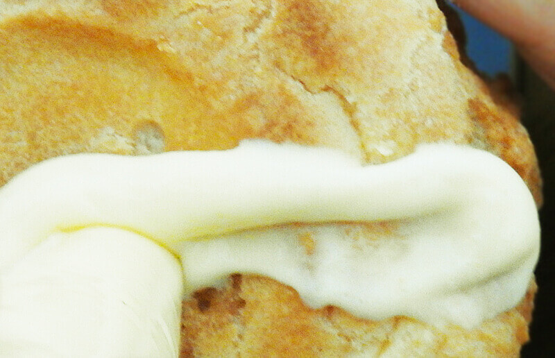 「シュー生地にカスタードクリームを詰めるだけ」とごく簡単な作業だと思いきや、ちょうどいい塩梅にカスタードクリームを詰めるのがかなり難しい……。