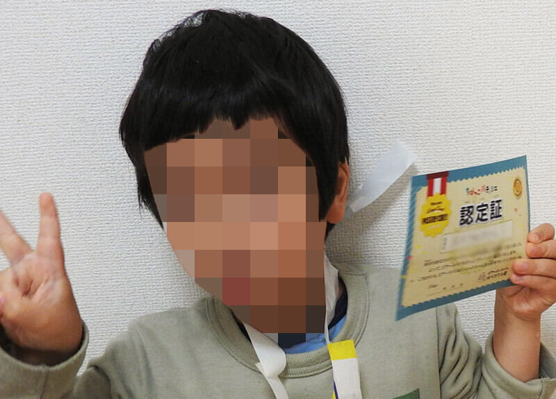 パティシエ認定証というものが入っていましたので、子ども達が食べているすきに名前を書いて準備。