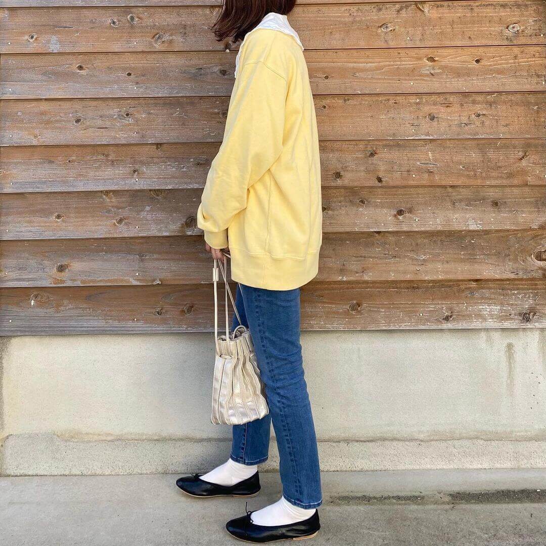 オーバーサイズのトップスと合わせると、メリハリのあるスタイルを演出できますね。