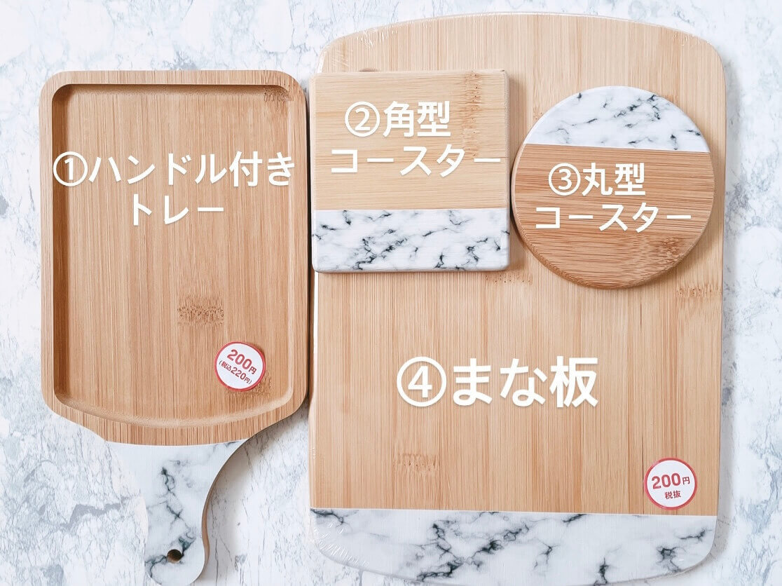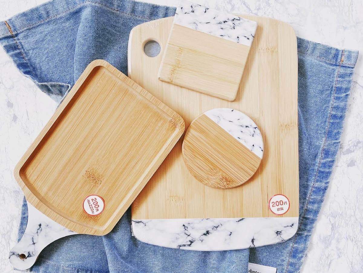 【ダイソー】ワンポイント大理石柄がにくい♪バンブーキッチン雑貨4選