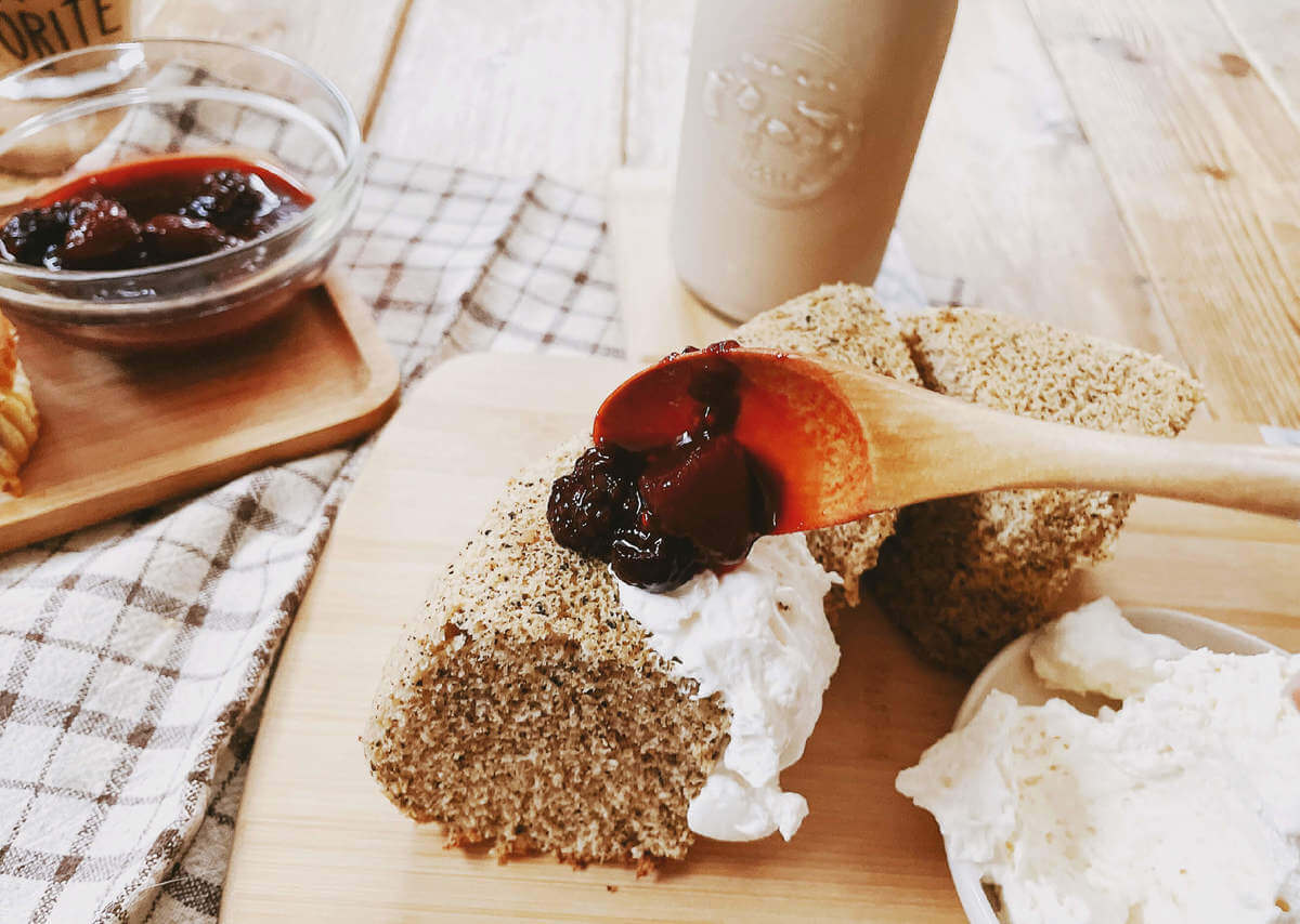 まな板はシフォンケーキを切って、そのままプレートの代わりにしてみました。