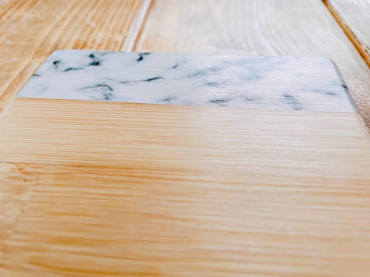 本体の素材は天然木の竹で出来ていて、大理石柄は近づくとプリントだとわかりますが、上から見ると十分に大理石に見えますよ。