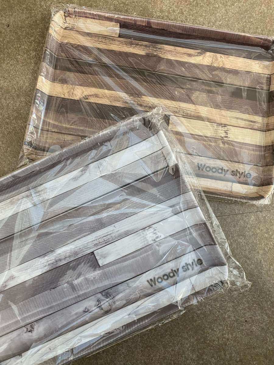 板を貼り合わせたような柄がおしゃれなトレイ