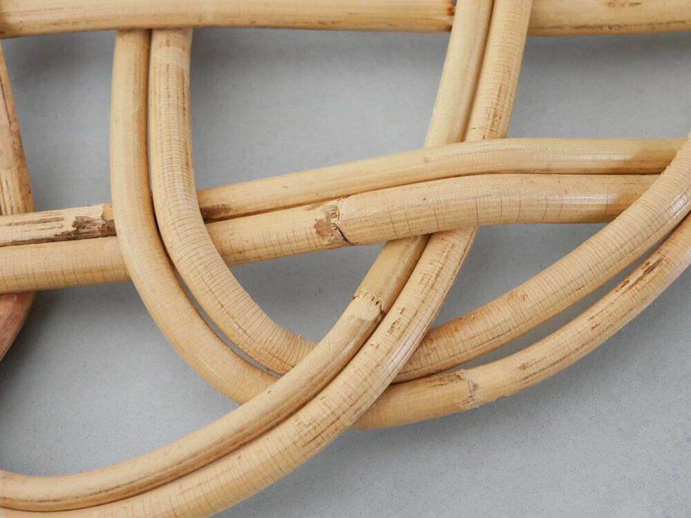 ラタンの素材由来の「色素の違い」や、「変色」、「節」を処理する際の擦れ、 籐皮エナメル質のひびや割れが表出している場合がございます。
