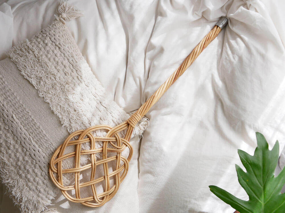 ラタンの柔らかな曲線が美しい「布団たたき」。大きめのサイズ感と手に馴染む柄が使いやすく、自然素材を使ったナチュラルさと、懐かしいデザインは無造作に置いていても絵になります。