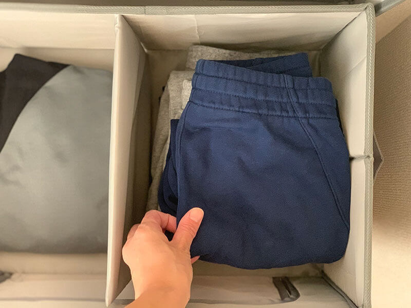 と、2つの開ける動作が必要なため、片付けが面倒になってしまうのですが、これを「整理&取り出しやすい衣類収納ボックス」で解決!