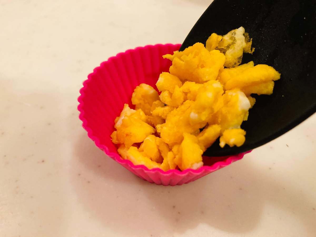 お弁当のカップによそうのにぴったりです!炒り卵やレトルトのおかず・ソースやジャムをかけたいときにもおすすめ。お菓子作りや離乳食の調理・作り置きにも使えそうです♪