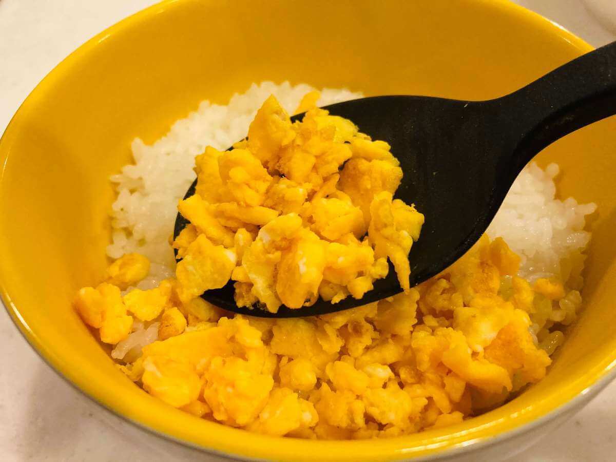 三食丼を作ってみました。シリコーン調理スプーンでよそうと、器からこぼれてしまうこともありましたが、スモールなら細かい炒り卵やそぼろ煮も少量ずつ入れられます。調理から盛り付けまで大活躍です!