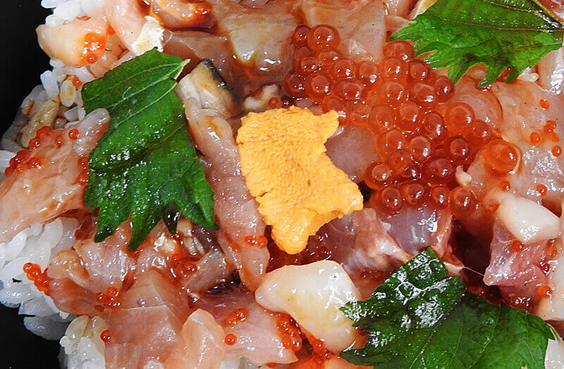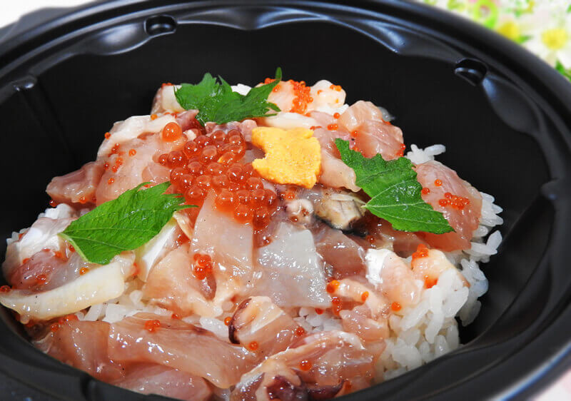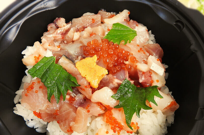 マグロやタイ、タコなどのお刺身やウニ、イクラ、とびこ、大葉が入っていました。入っているお刺身は季節によって違います。季節をまたいだら、リピ買いしたいですね。
