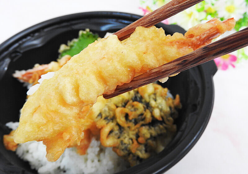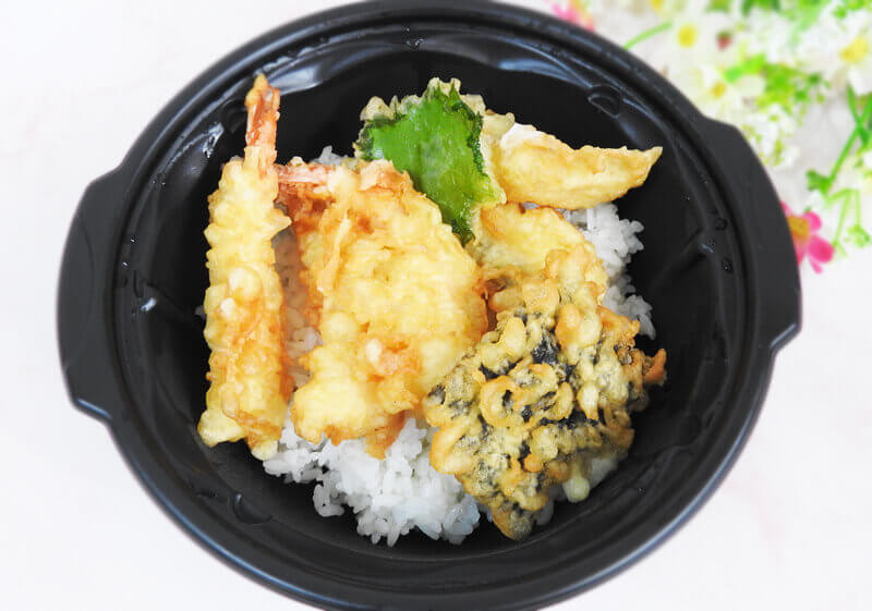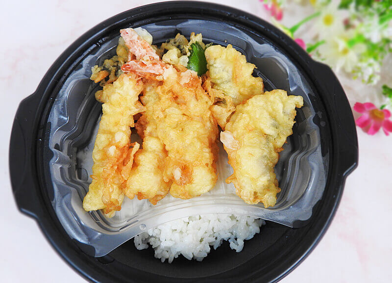 容器は天ぷら部分とごはん部分と、二段にわかれていました。