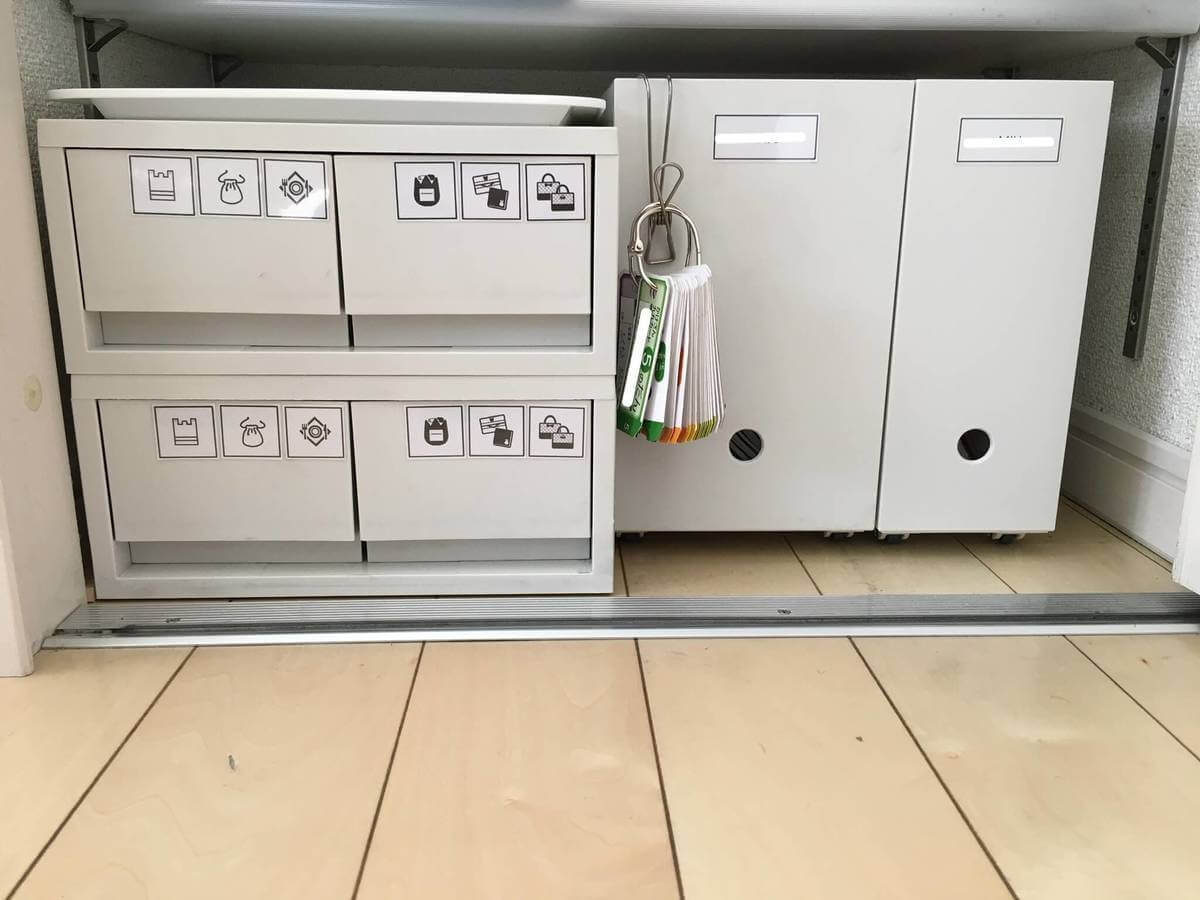 セリアの見える収納に変更後はワンアクションで準備・片付けができるので、ストレスフリーに!