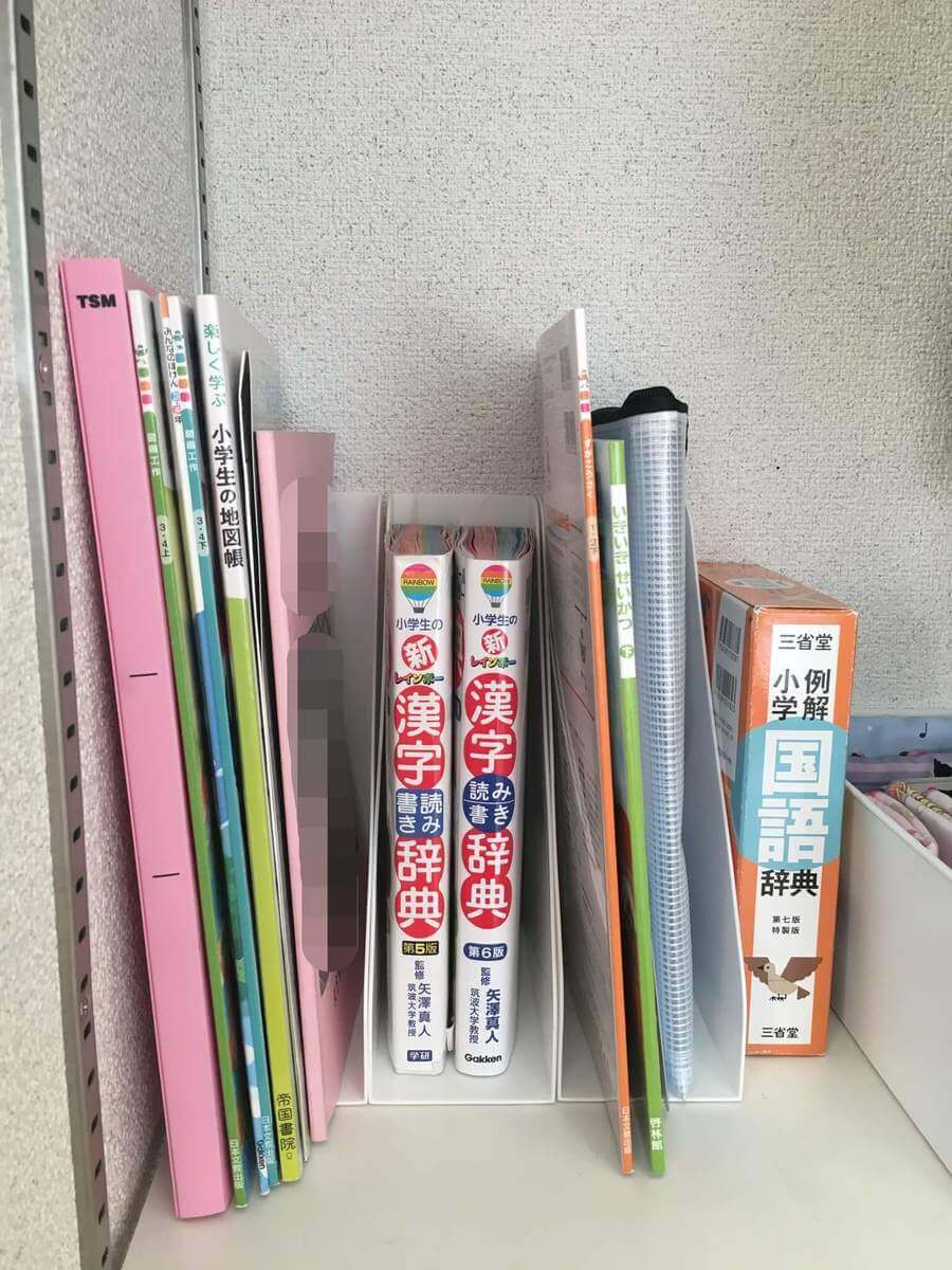 教科書や持ち帰ったドリルは、無印良品のポリプロピレンファイルボックスに横向きに入れていました。
