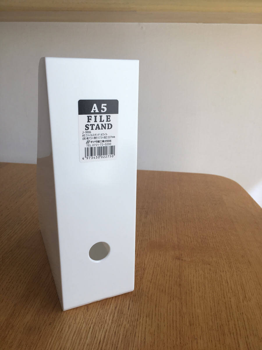 そこで改善策としてセリアのファイルスタンドを使って立てる収納に変えました。