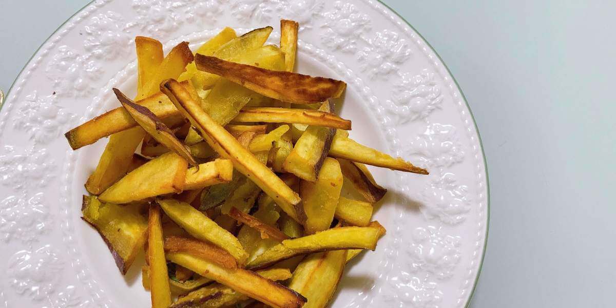 さつまいもを少し多めのオイルで素揚げするとオリーブオイルの風味と相まって上品なフレンチフライの完成!